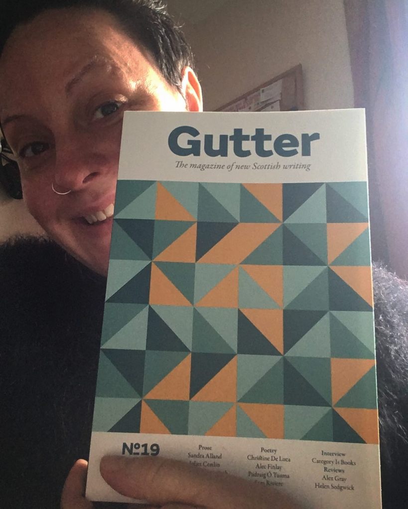 Their short story, ‘Thrum’ , based on their experiences of miscarriage, was published in New Writing Scotland 37 and was selected for inclusion in A. L. Kennedy’s Short Story Masterclass in St Andrews in 2018. A version of this story won the Imprint Writing Awards in 2017.